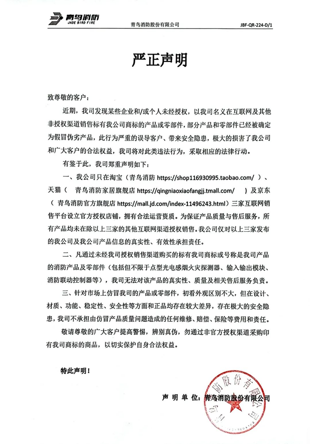 關(guān)于市場上仿冒青鳥消防產(chǎn)品的嚴(yán)正聲明